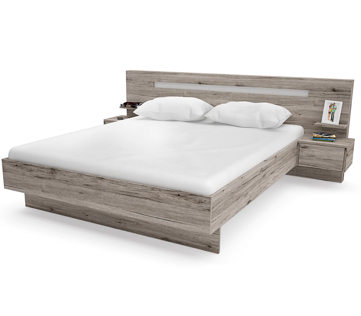 ANDRÉ ágykeret ágyráccsal, 2 db ajándék éjjeliszekrénnyel és 2 kis polccal.