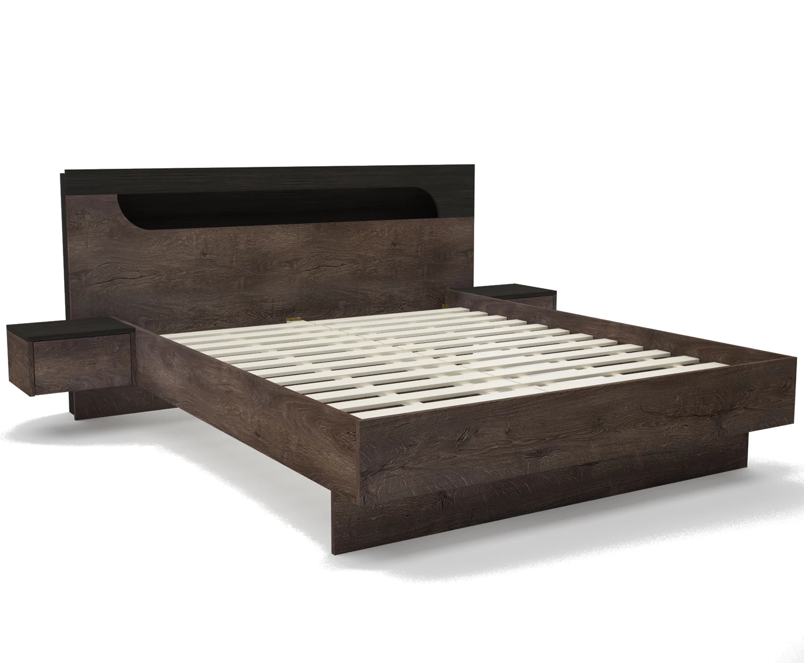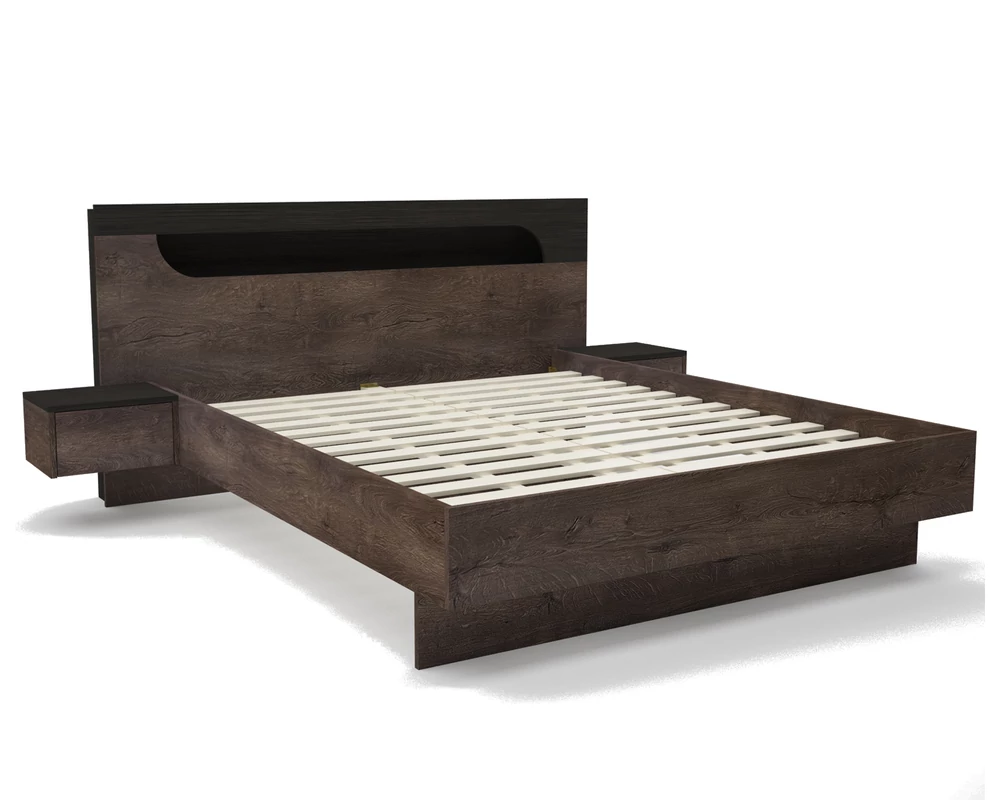 APOLLO ágykeret RGB LED világítással 180 x 200 cm - Iszap Tölgy / Nero + 2 db Éjjeliszekrény