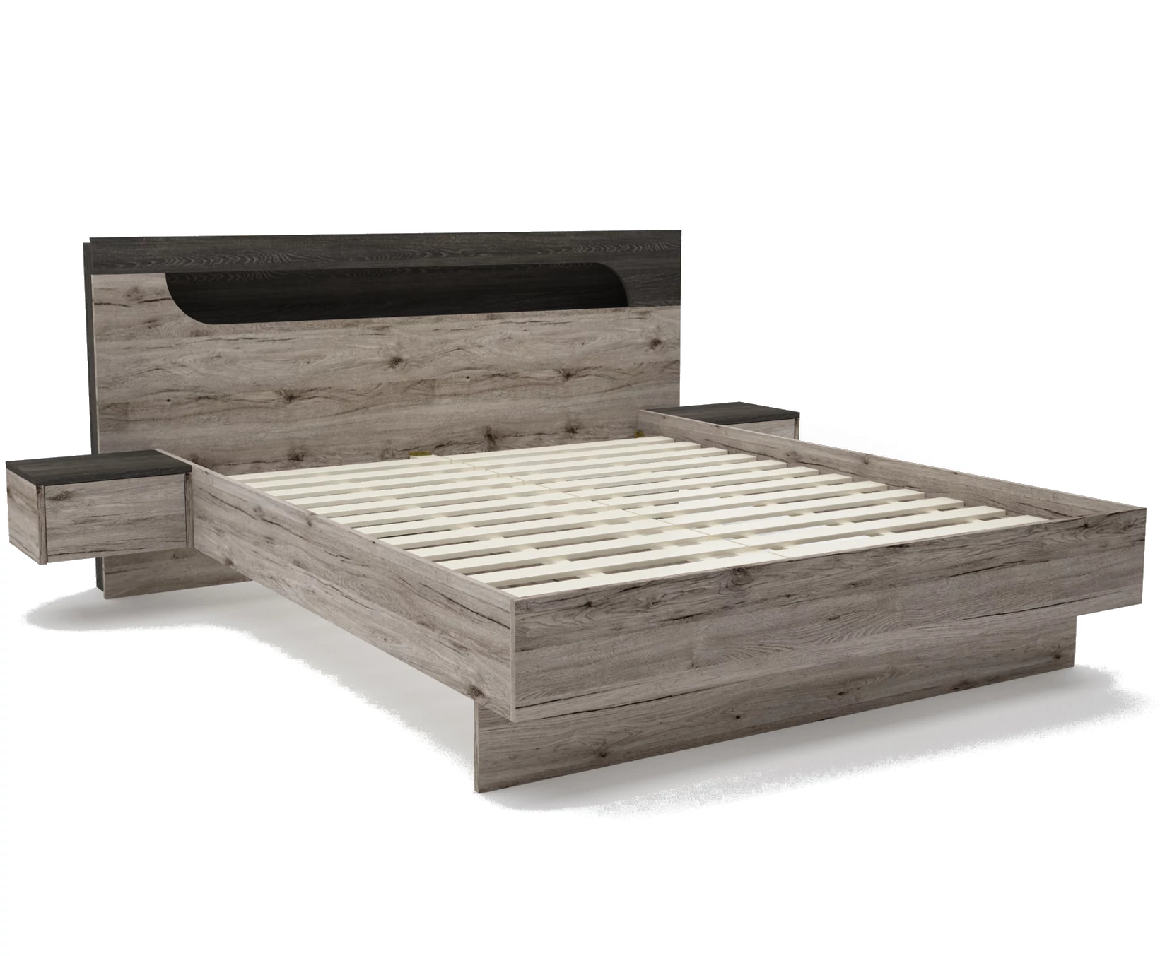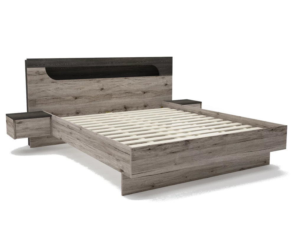 APOLLO ágykeret RGB LED világítással 160 x 200 cm - Sonoma Tölgy / Rusztik Fehér + 2 db Éjjeliszekrény