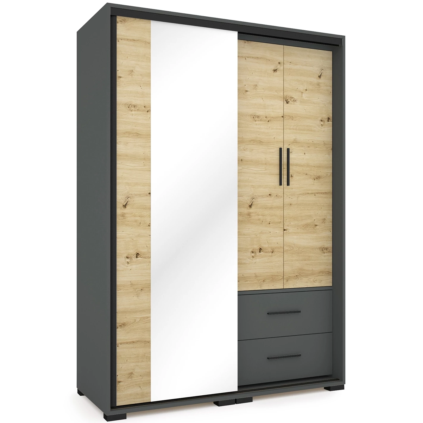 ARIZONA 140 cm toló- és nyílóajtós gardrób - Matt Sötétszürke / Artisan Tölgy / Fekete profil