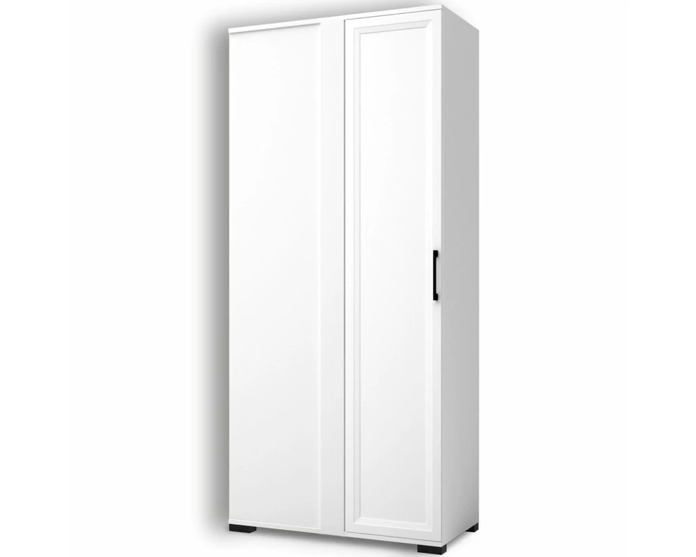 Az Everest elemes gardróbrendszer egy praktikus és rugalmas tárolási megoldás, amely lehetővé teszi a ruhák és más tárgyak rendszerezett elhelyezését. A fehér színű keretes elemeknek elegáns megjelenést ad a fekete fogó és láb.