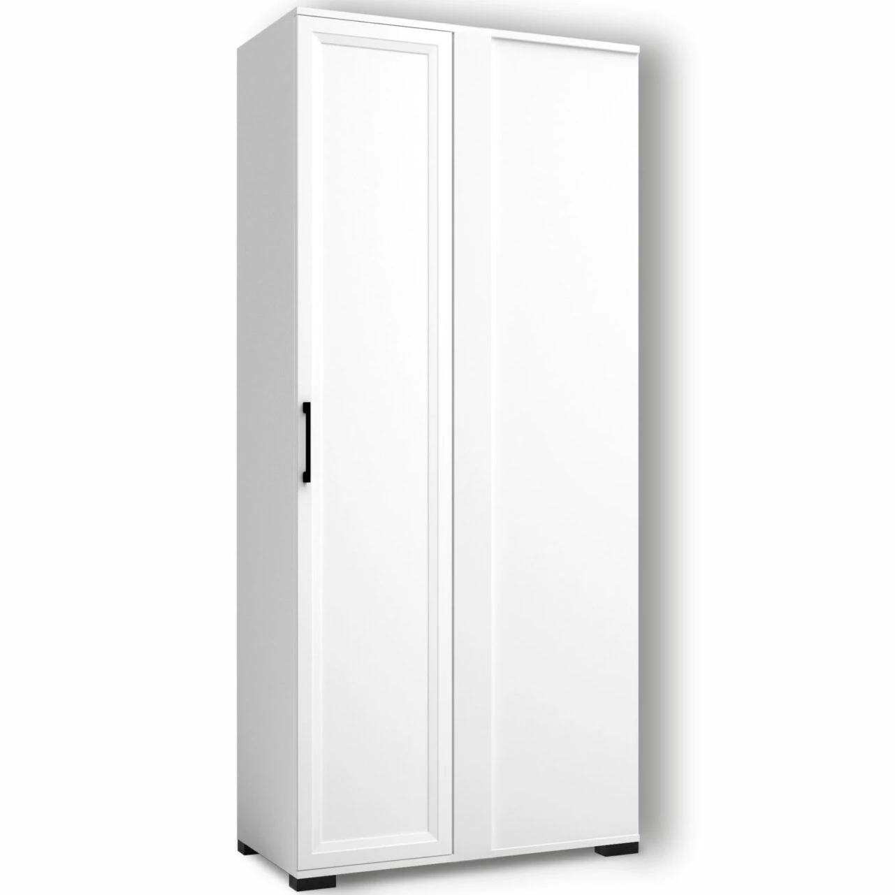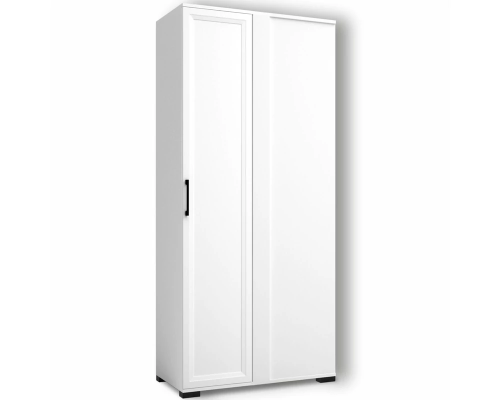 Az Everest elemes gardróbrendszer egy praktikus és rugalmas tárolási megoldás, amely lehetővé teszi a ruhák és más tárgyak rendszerezett elhelyezését. A fehér színű keretes elemeknek elegáns megjelenést ad a fekete fogó és láb.