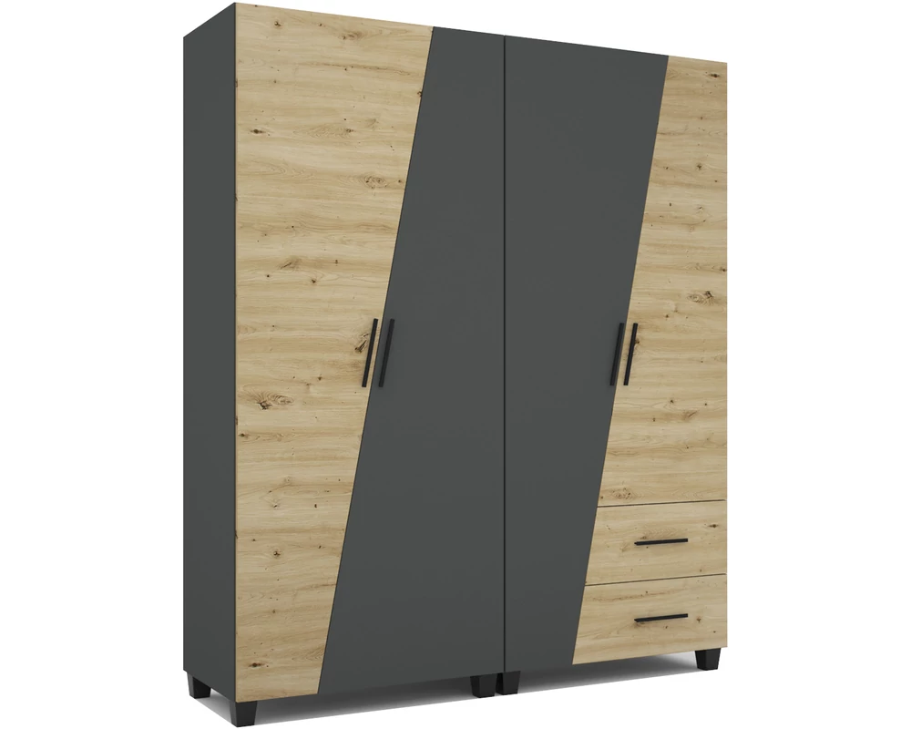 ONIX 180 cm nyílóajtós gardrób TÜKÖR NÉLKÜL - Artisan Tölgy / Matt Sötétszürke
