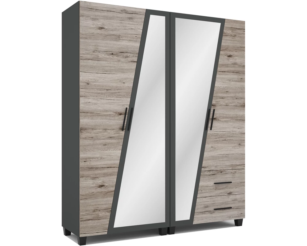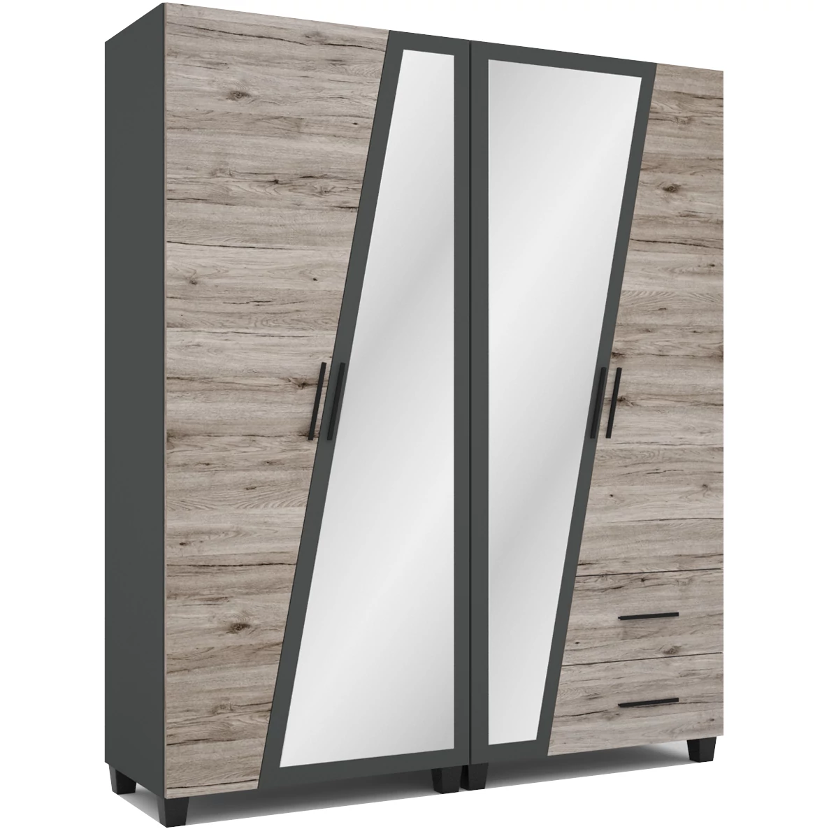 ONIX 180 cm nyílóajtós gardrób TÜKÖRREL - Artisan Tölgy / Matt Sötétszürke